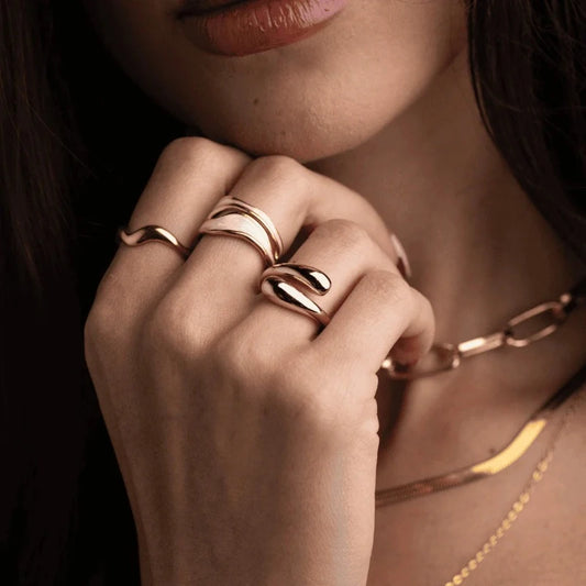 The Leona Ring embodies elegance with its bold, sculptural design. Its smooth, rounded curves reflect light beautifully, creating a sense of fluidity and modernity. Available in both gold and silver, this ring is a statement of understated luxury. It wraps around your finger like a whisper of sophistication, perfect for adding a touch of artistry to any outfit.
