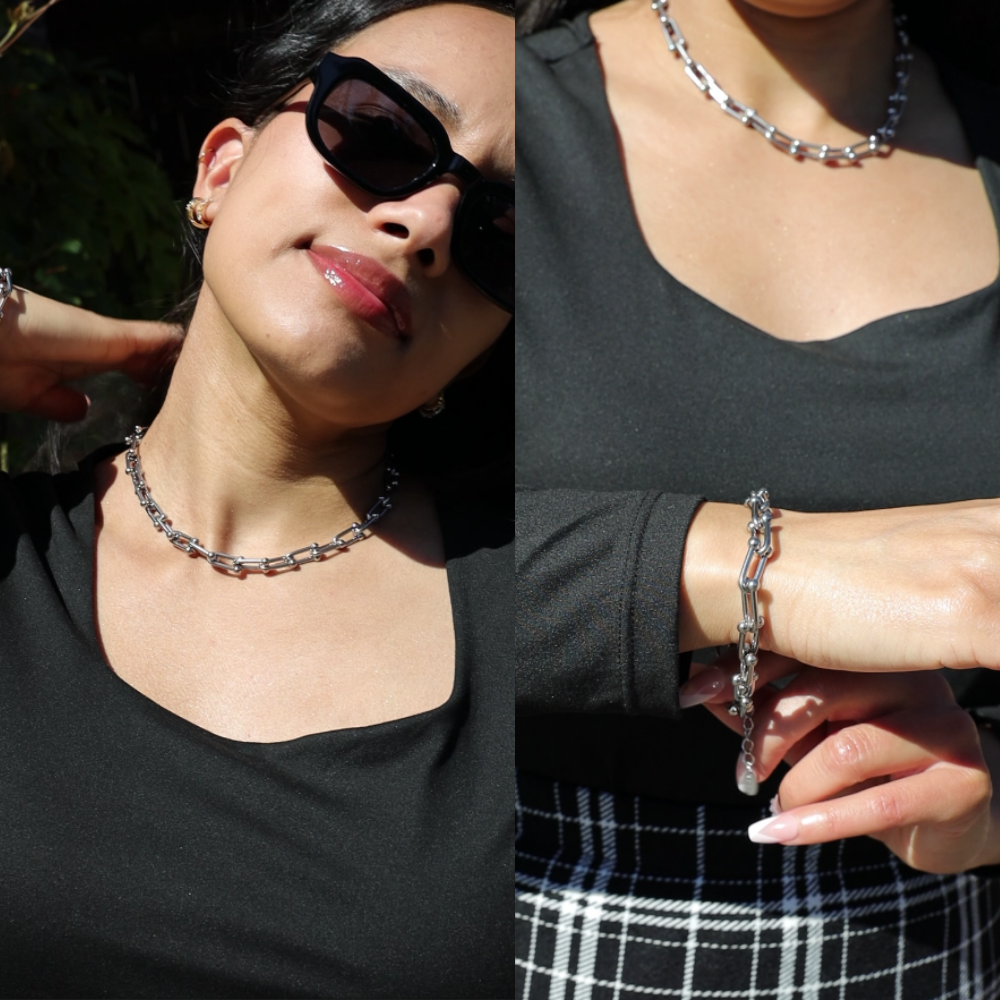Elevate your everyday look with the full London Link collection — a perfectly matched trio of necklace, bracelet, and earrings designed to be worn together or layered individually.